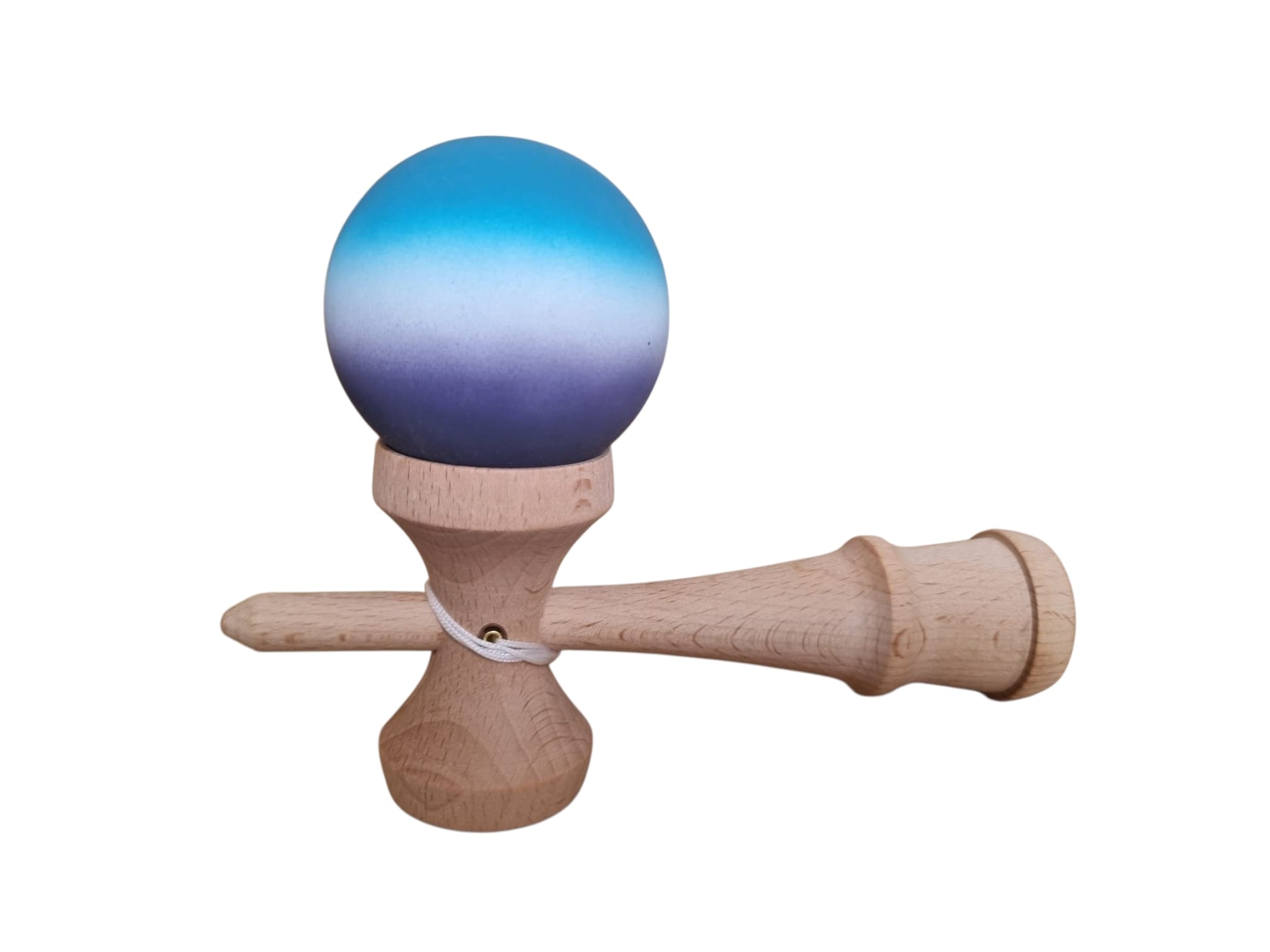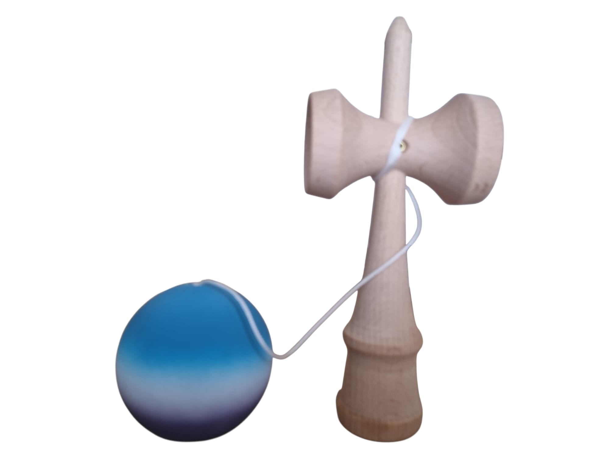 Kendama de 18 cm, fabricată din lemn, cu o bilă colorată acoperită cu cauciuc Finisaj neted, durabil și greutate echilibrată pentru o senzație bună la atingere și control.