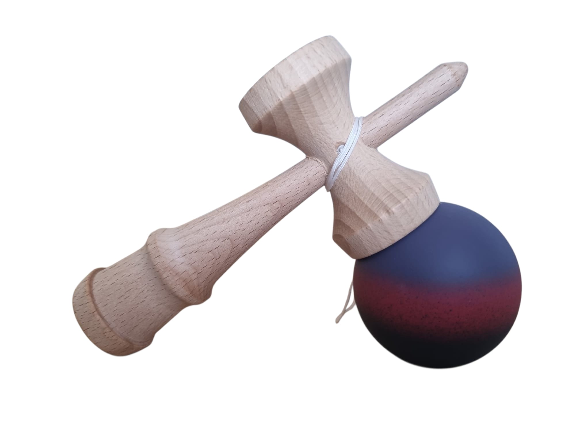 Kendama de 18 cm, fabricată din lemn, cu o bilă colorată acoperită cu cauciuc Finisaj neted, durabil și greutate echilibrată pentru o senzație bună la atingere și control.