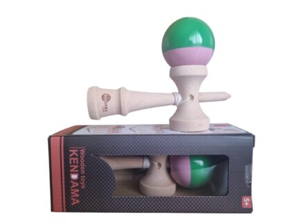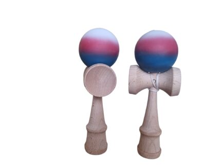 Kendama de 18 cm, fabricată din lemn, cu o bilă colorată acoperită cu cauciuc Finisaj neted, durabil și greutate echilibrată pentru o senzație bună la atingere și control.