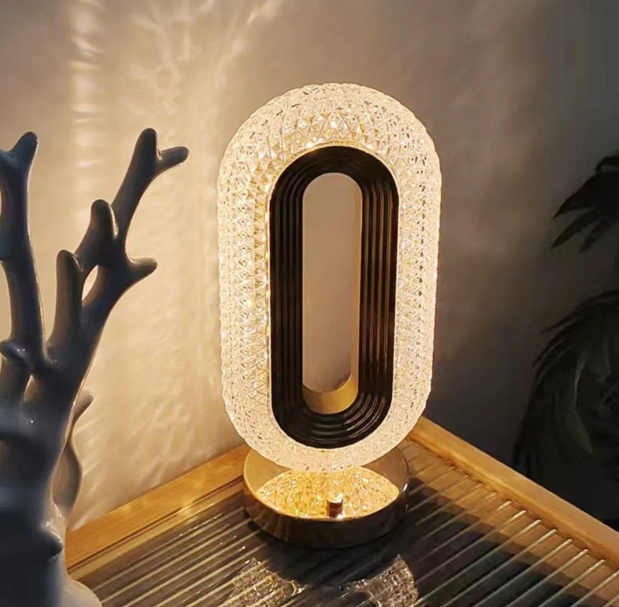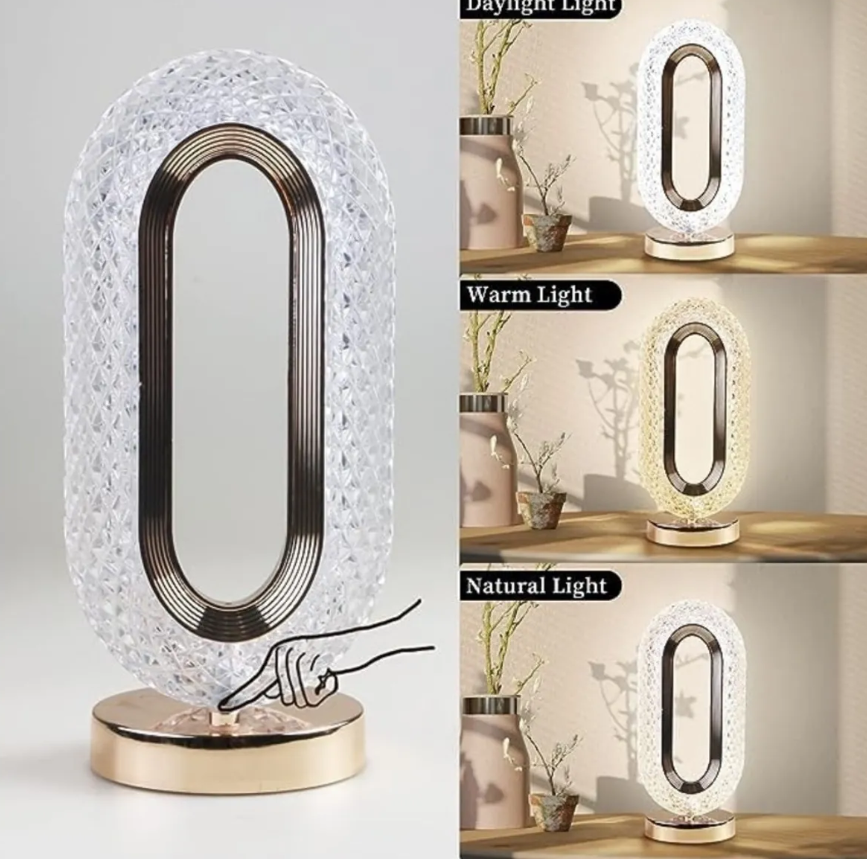 Lampa de masă tip cristal eleganta, 3 culori, control touch, reincarcabila prin USB, acrilic modern